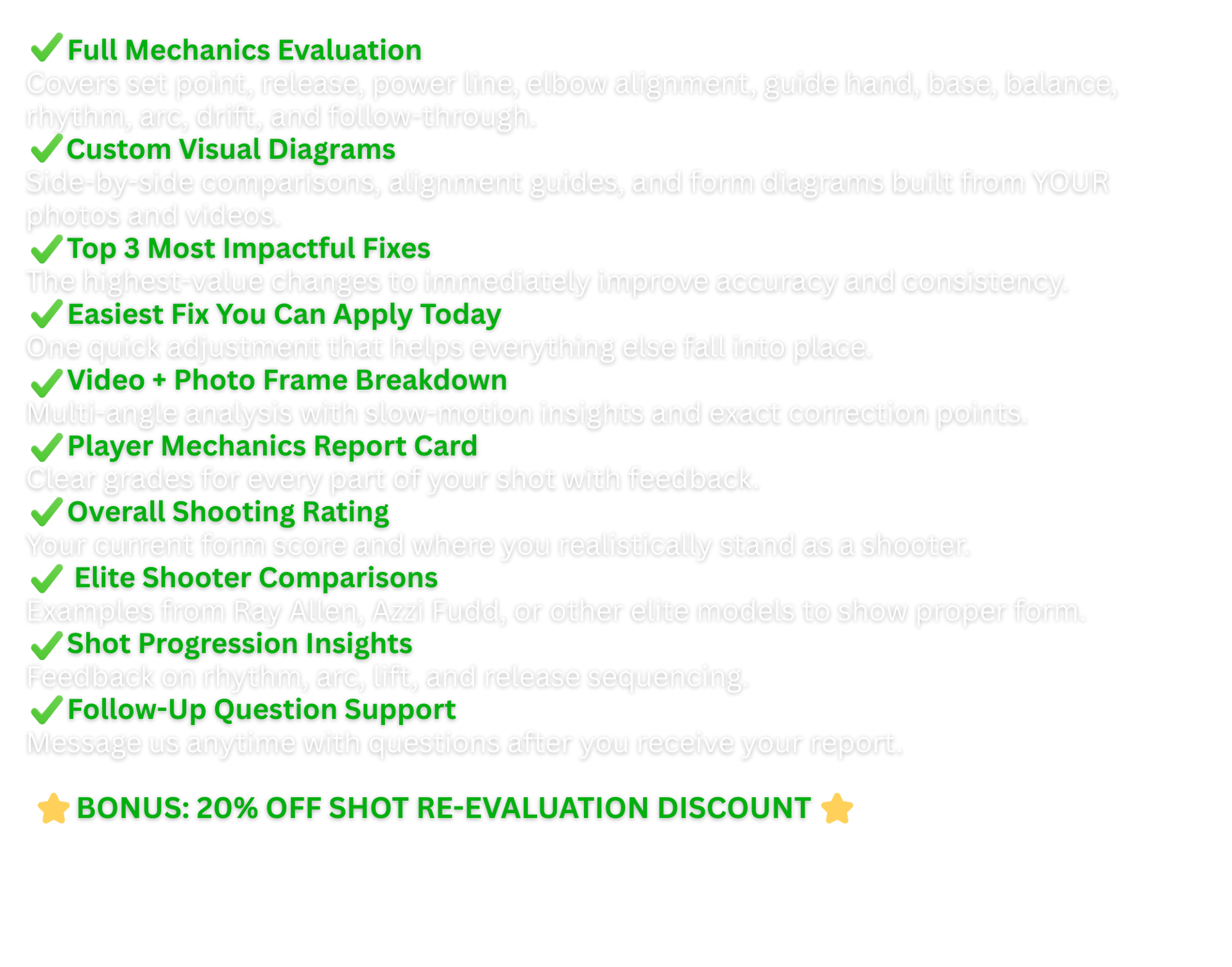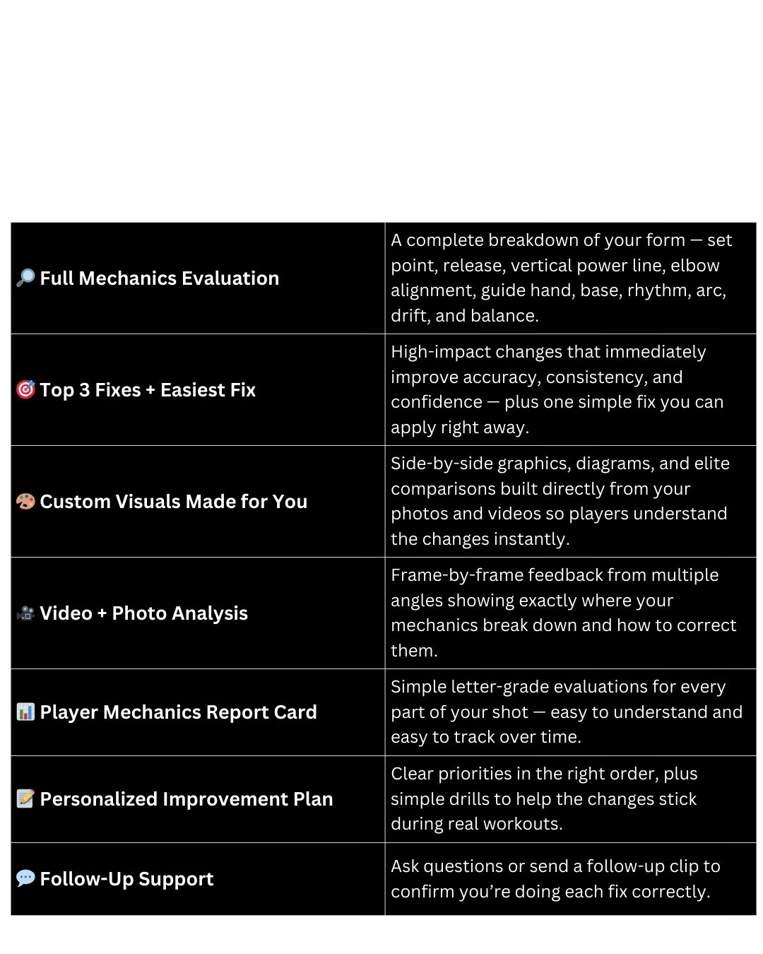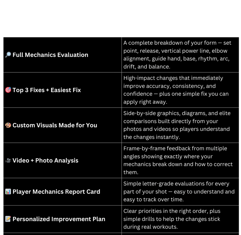 If you’re looking to level up your shot or get real, honest feedback, all you have to do is send us a few videos and pictures. We’ll build a detailed, easy-to-follow report you can use right away.